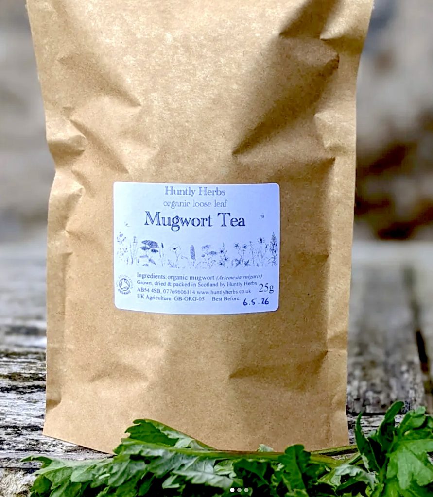 Mugwort Tea has a delicious lightly herby flavour, and is said to be calming and relaxing – a naturally caffeine free drink, and an alternative to chamomile tea. Our mugwort is organically grown, harvested and dried by us, and certified by the Soil Association. https://huntlyherbs.co.uk/