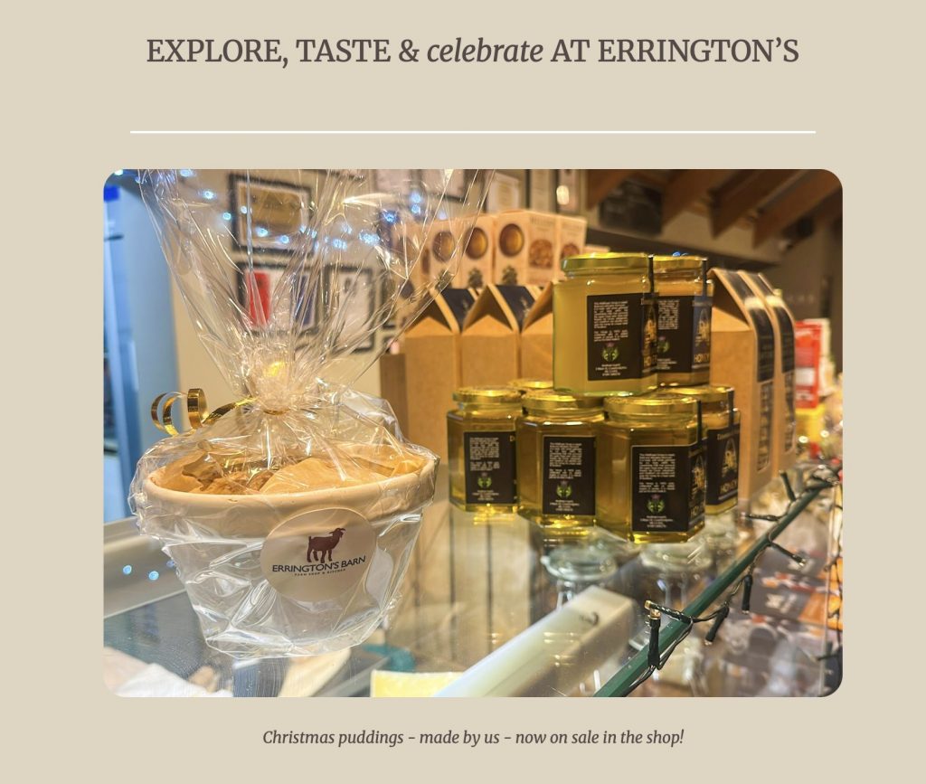 Join us for our late-night Thursday openings at Errington Barn in the lead-up to Christmas. Each week, the barn and surrounding woodland will be illuminated with gentle fairy-light paths, creating a welcoming atmosphere for an enjoyable festive evening. Guests can savour cheeseboards and warm raclette bowls featuring Ogleshield cheese, explore a curated selection of produce in the farm shop, and sample a variety of cheeses along the way.